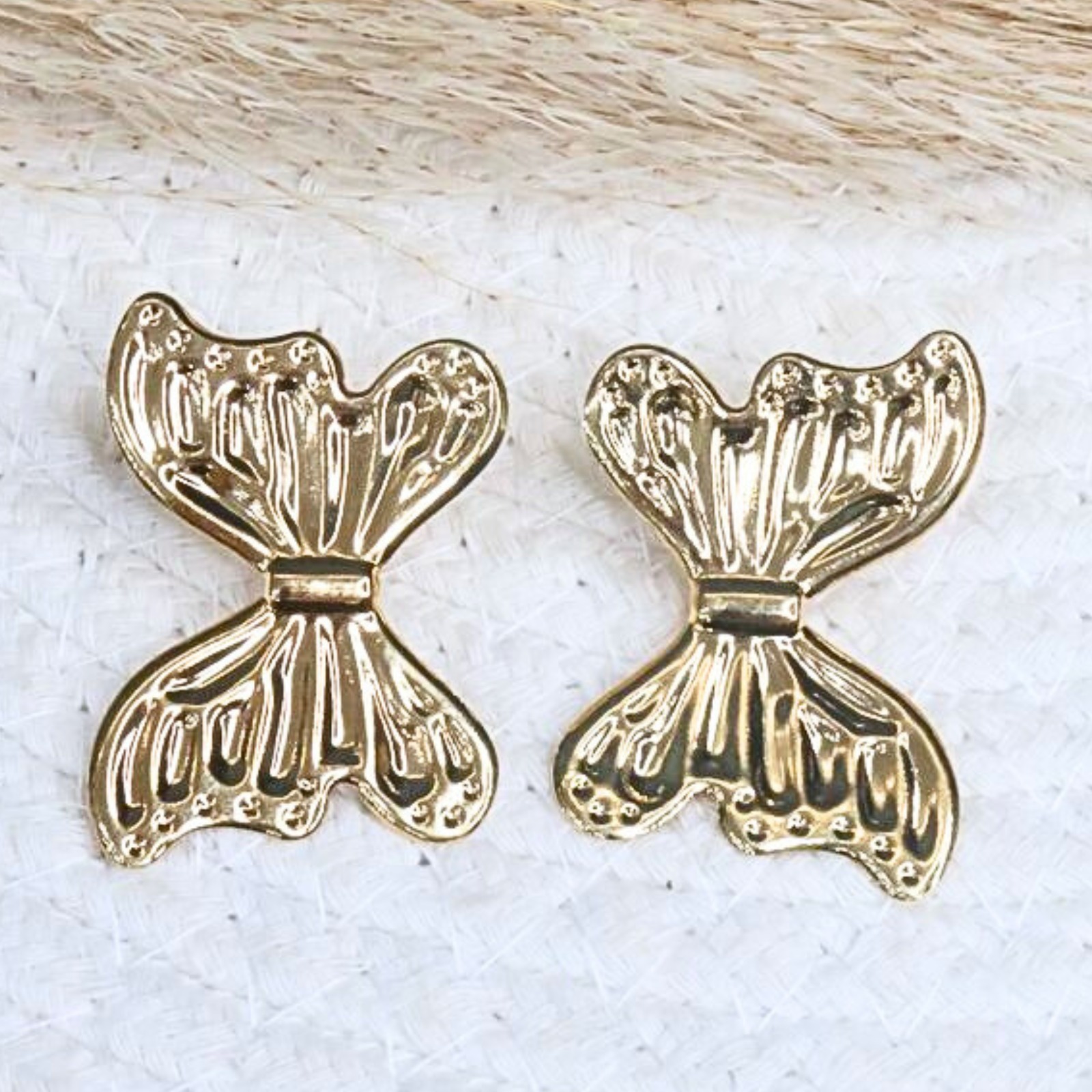 BRINCO CHAPA TRABALHADA BORBOLETA BANHADO A OURO